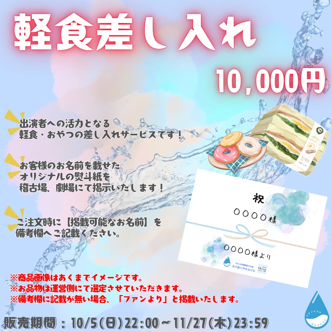 出演者への活力となる軽食・おやつの差し入れサービスです!